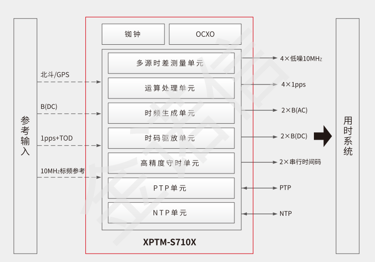 多源输入:BDS B1/B3、GPS、1pps+TOD、B(DC)、PTP、外10M晶振