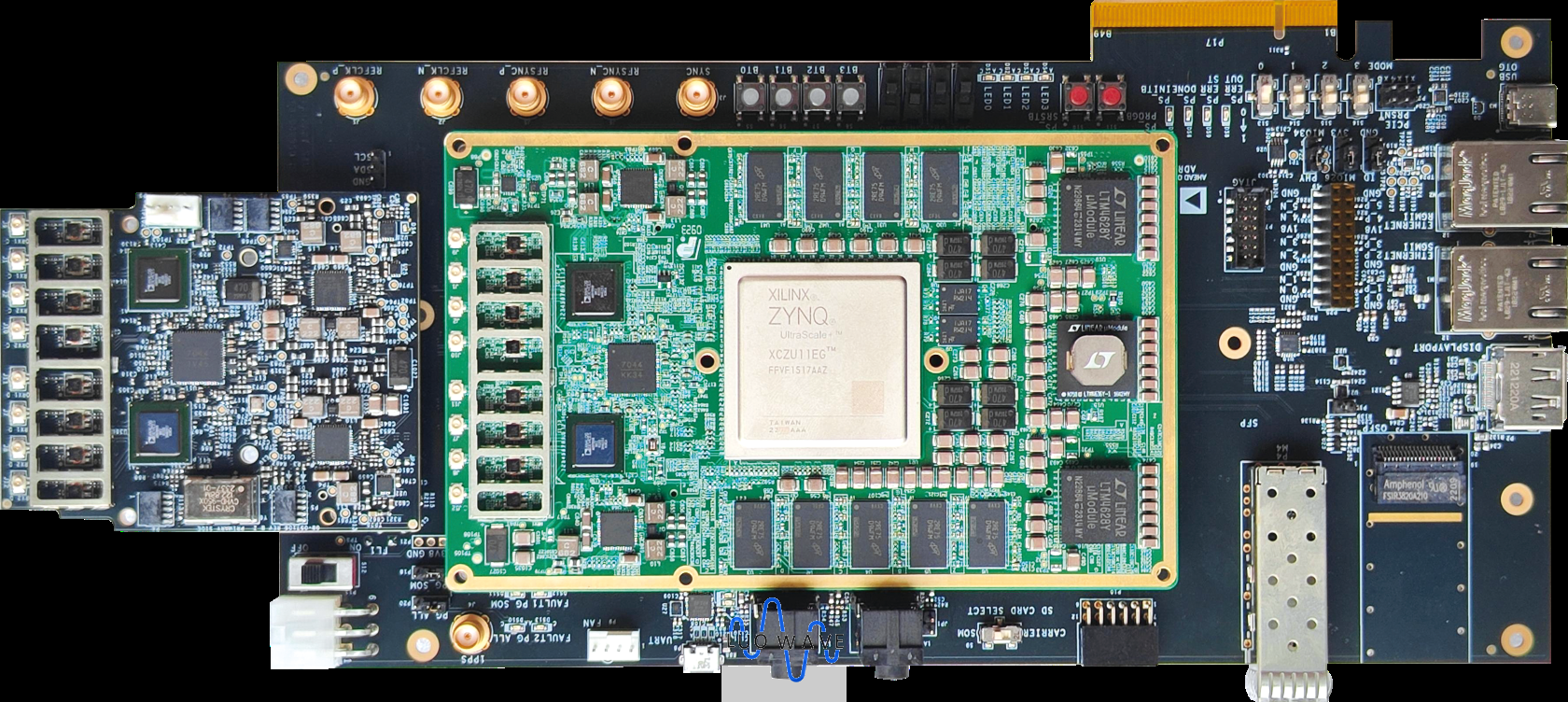 LW9009-ZU11EG-LW2CRR-4板卡集成LW9009-ZU11EG核心板与LW2CRR载板。该硬件平台可用于提供四路 Tx 和 Rx,覆盖频率范围为75MHz至6GHz,采用Zynq UltraScale+ ZU11EG芯片。拥有丰富接口资源,支持用户进行原型设计。