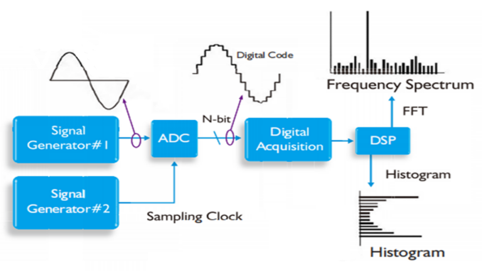 多个频率信号同时作用于ADC的不同通道,以验证其在线性范围内的响应特性