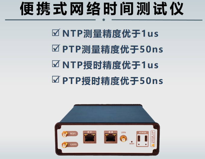 测量能力:可对 NTP(网络时间协议)、PTP(精确时间协议)的授时精度进行测量;