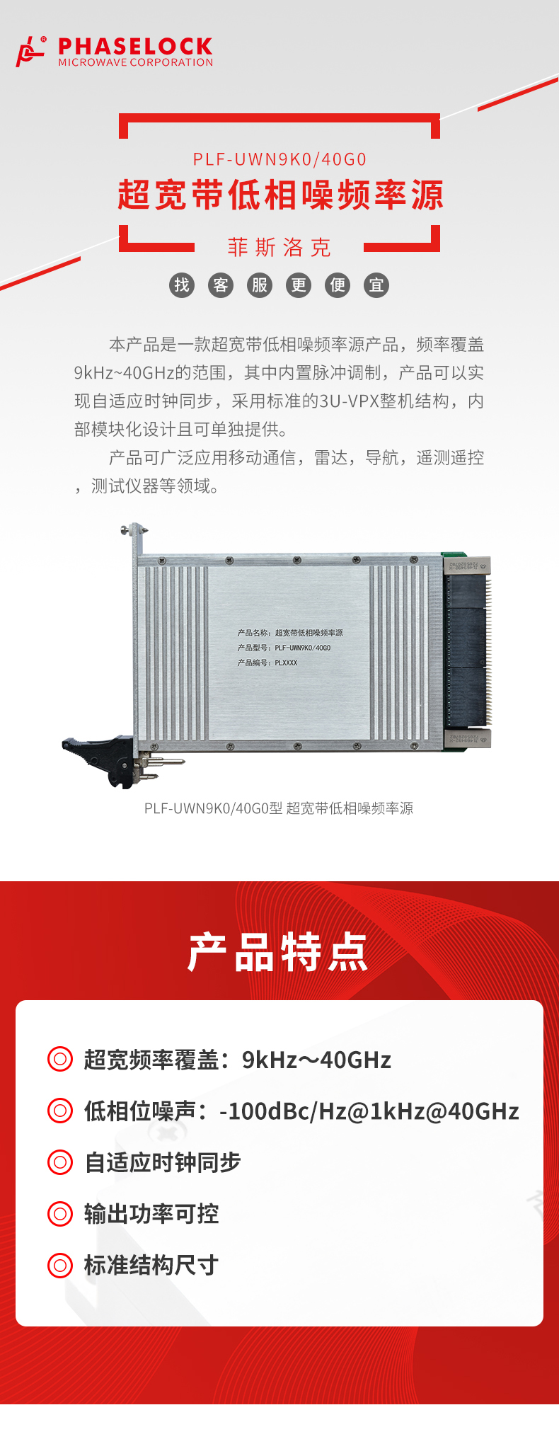 相位噪声:<-103dBc/Hz@10kHz@40GHz